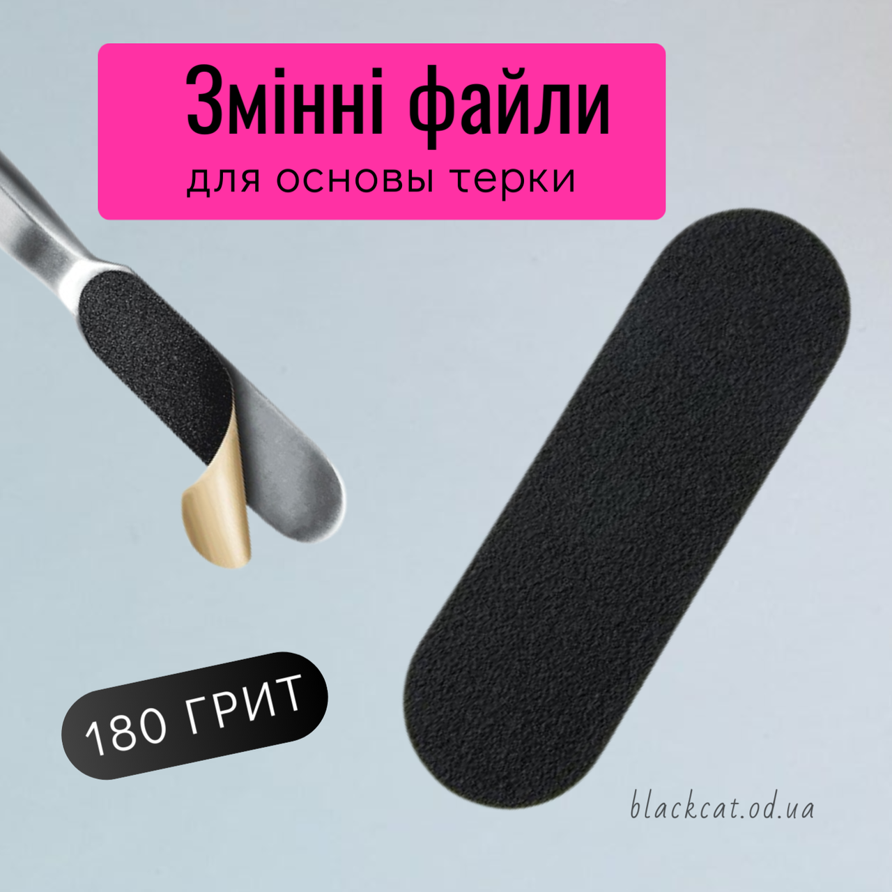 Вироби виготовлені для наклеювання на металеву основу педікюрної терки . Високоякісний аксесуар з оптимальною клейкою основою являє собою міцний абразив, що не розмокає при контакті з водою і косметичними продуктами. Робоча поверхня має рівень жорсткості 180 грит, що дозволяє ретельно і при цьому безпечно відлущувати ороговілі частинки шкіри і полірувати її.
